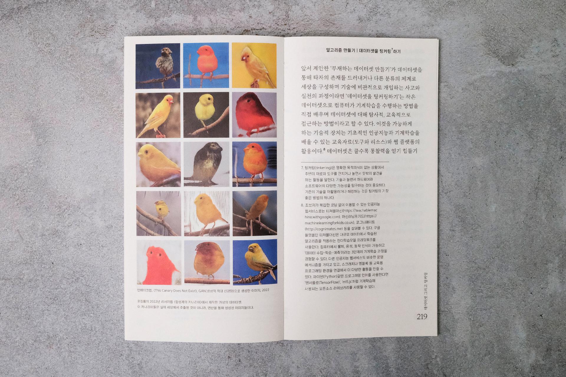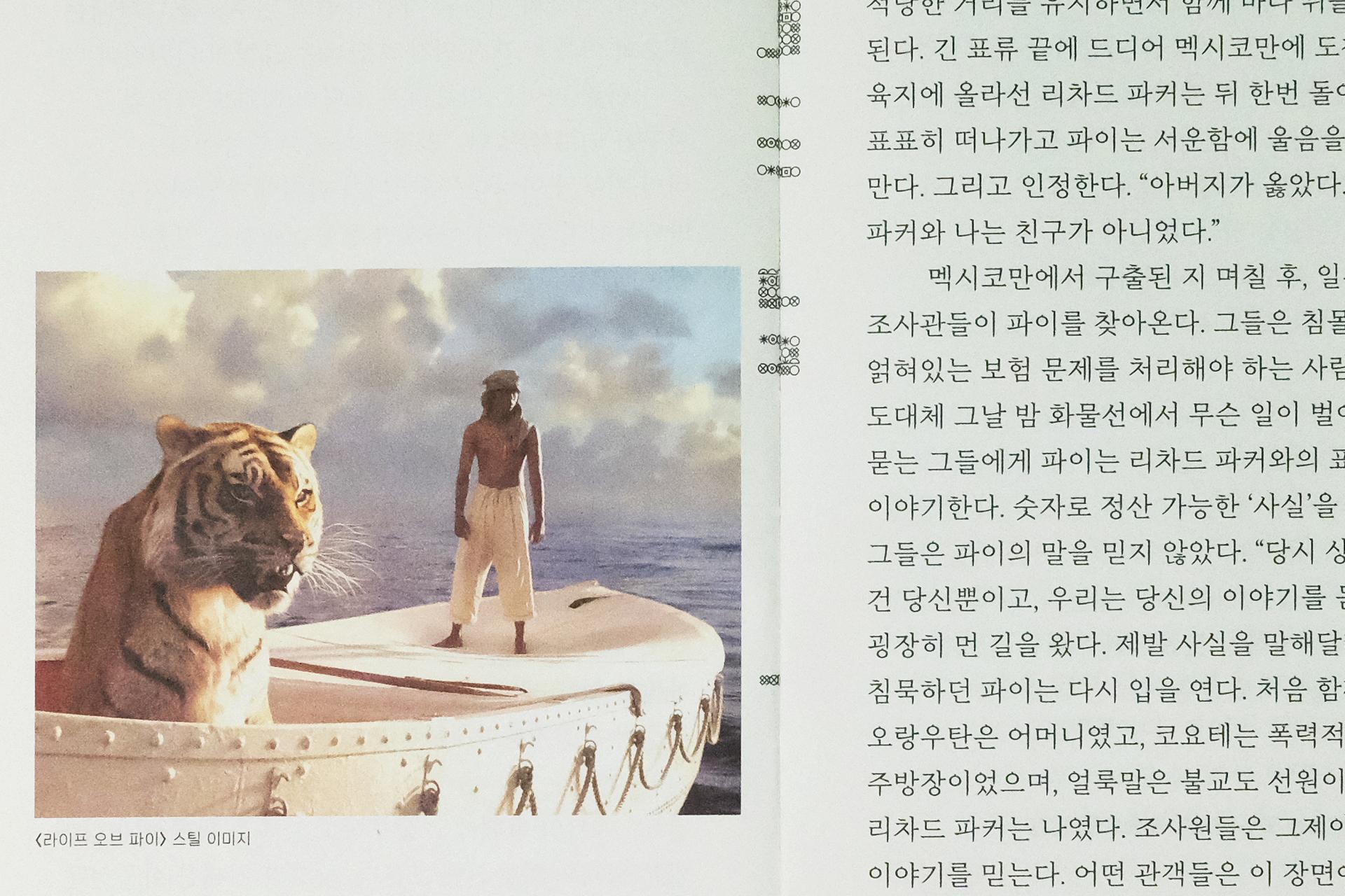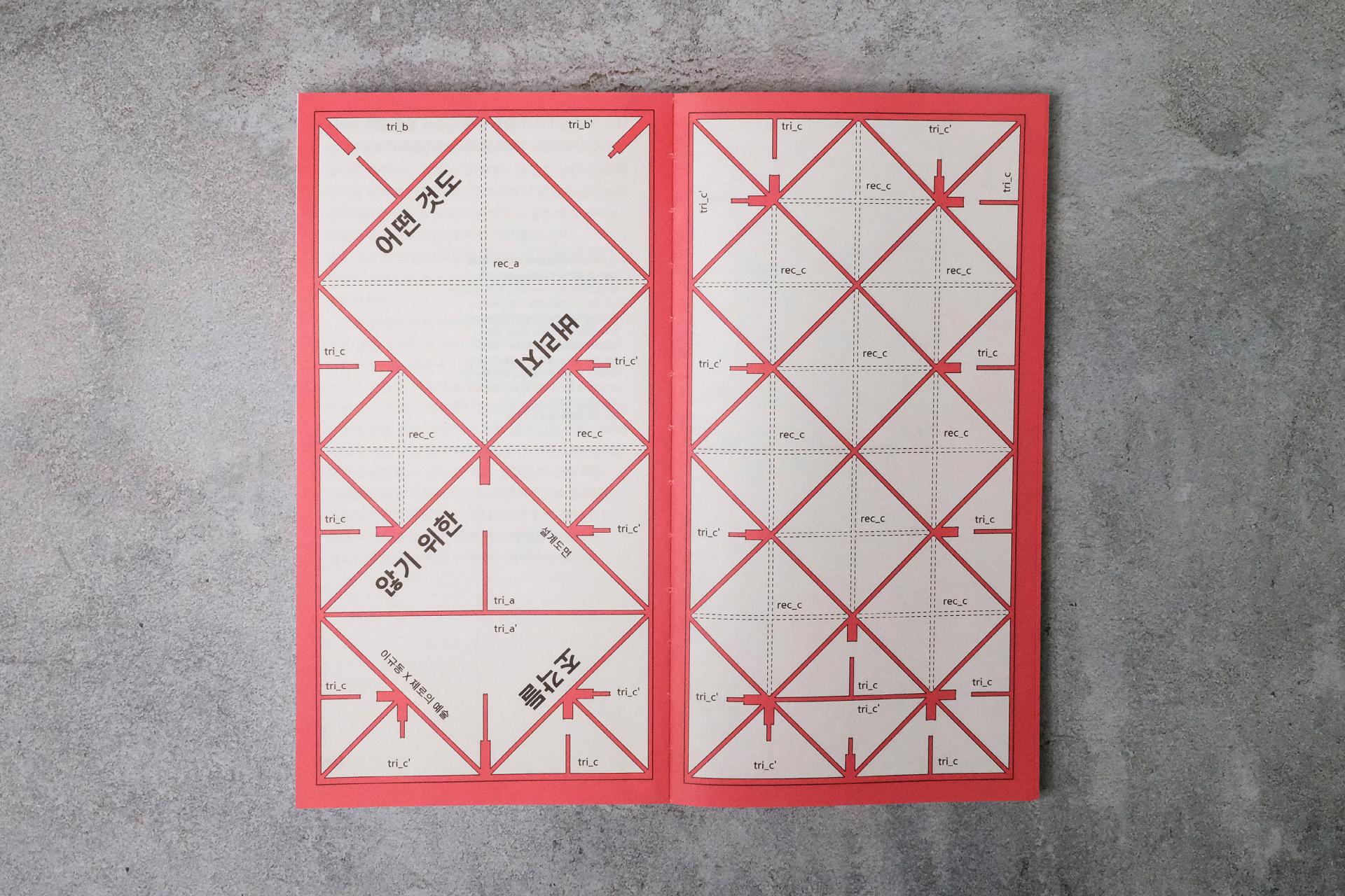 외양이 조금 특이합니다. 앞표지에는 목차를, 뒷표지에는 판권지를 앉혀 책의 정보들을 외부에 노출했고, 정교한 계산을 통해 내지에 넣은 기호 패턴이 노출사철제본으로 엮은 책등에 제목이 되어 드러나도록 디자인했습니다. 표지와 내지 모두 재생펄프 함유율이 100퍼센트인 종이에 콩기름으로 인쇄했고, 4X6 전지의 24절 사이즈로 버려지는 종이를 최소화했습니다. 본문 폰트의 크기는 시원하게 키우고 유니버셜 디자인을 적용해 더 많은 사람이 편히 읽을 수 있도록 했습니다. 제작 과정과 만듦새에 여러 모로 고민이 많이 담긴 책입니다.