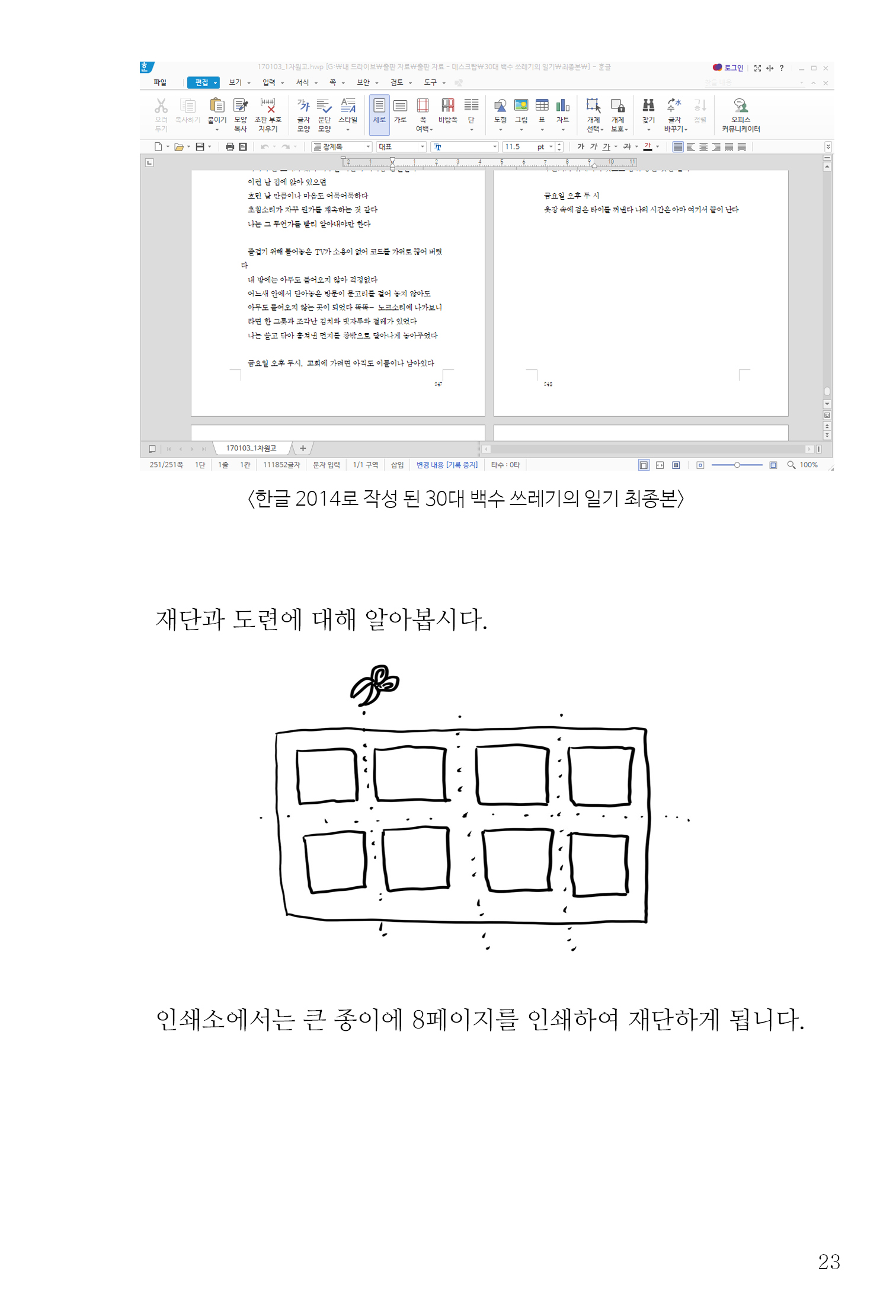 혼자서 책을 만들어 보려는 사람 혹은 글을 쓰고 싶지만 망설이는 분들에게 조금이나마 도움이 될 것이라 믿습니다. 표지 색은 짙은 노랑과 파랑 두 종류로 만들었습니다.