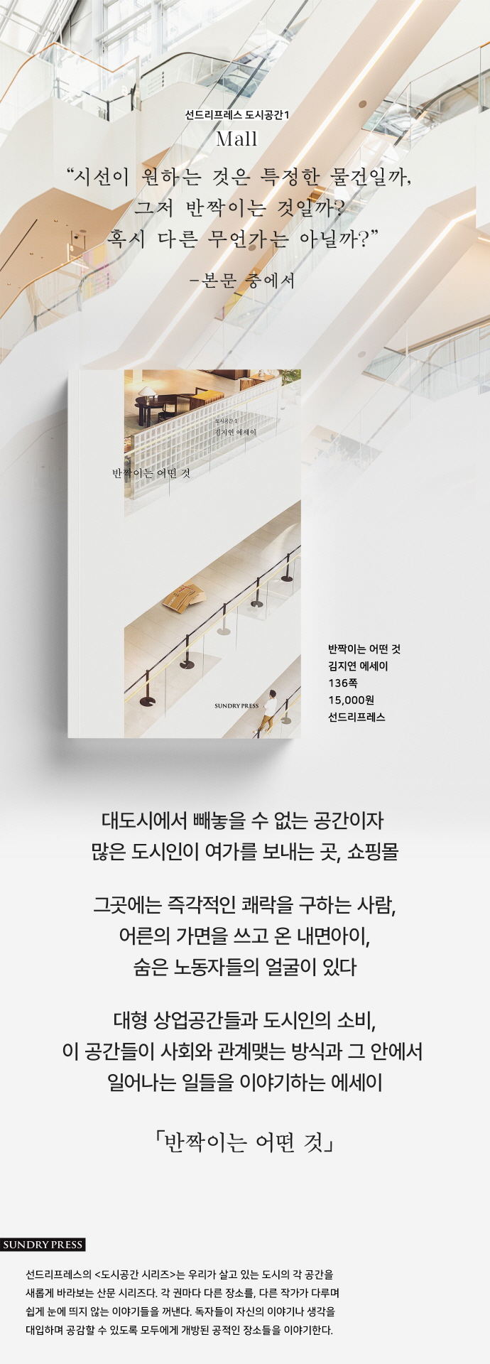 이 책은 쇼핑몰을 비롯한 백화점, 대형마트 같은 대형상업공간들과 도시인의 소비, 이 공간들이 사회와 관계맺는 방식을 이야기한다. 작가와 주변 사람들의 개인적인 이야기들과 함께 쇼핑몰이 등장하는 다양한 영화와 소설, 드라마를 예로 들면서, 때로는 가볍게, 때로는 진지하게 수다 떨듯 이어 나가는 에세이다.