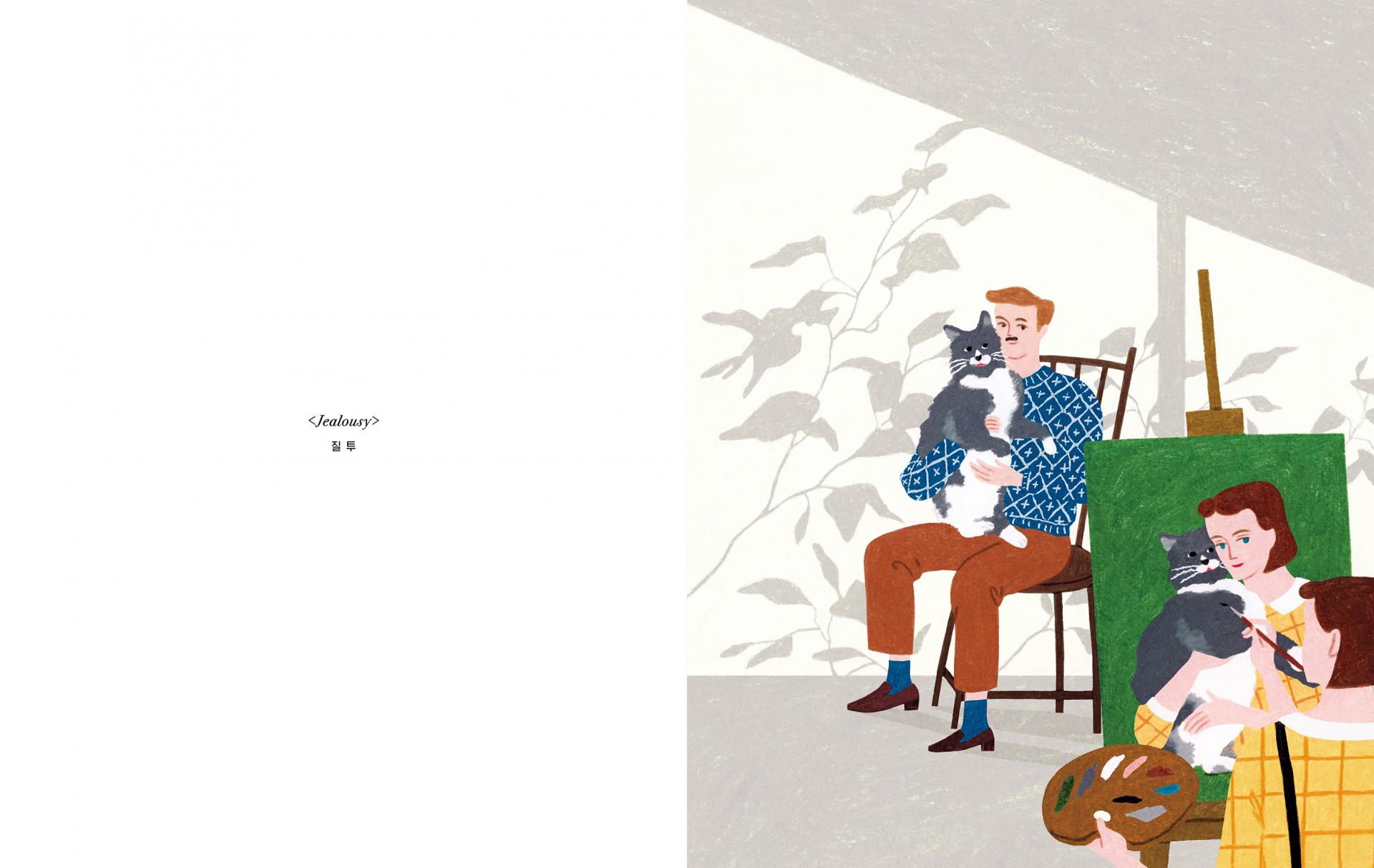 각각 동물들과 함께하는 위트있는 일상과 어딘가 삐뚜름하고 모난 마음을 담은 그림들을 담았습니다.