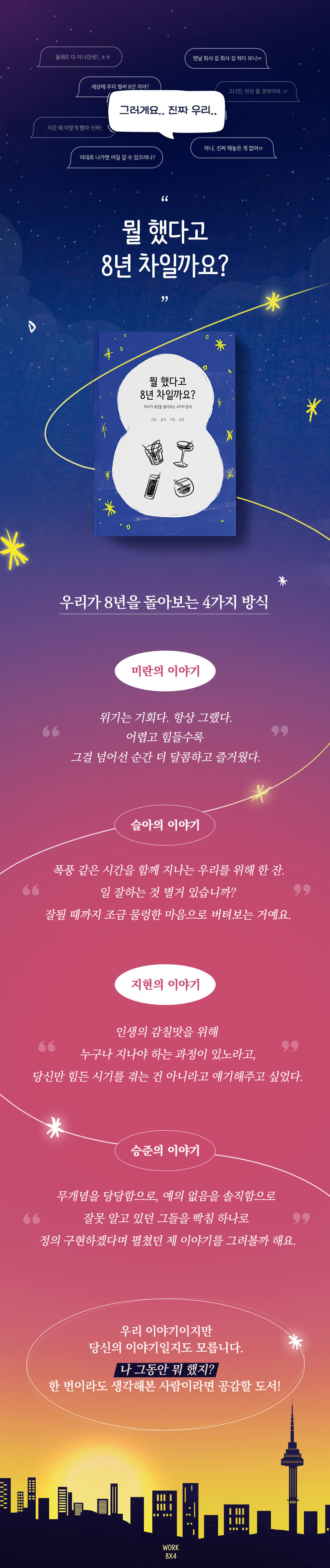 일을 하며 만난 수많은 사람과 회사라는 공간에서 맞닥뜨린 다양한 에피소드를 통해 따듯한 위로를 느껴보세요.