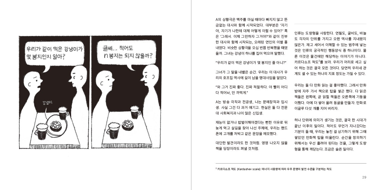 모두의 공상이 확장할 수 있도록, 가벼운 마중물 같은 코멘터리가 함께합니다. 이는 기발하기도, 진부하기도, 서툴기도 하죠. 구체적 상상을 돕는 장치로 활용하셔도, 혹은 그저 카페 옆 테이블의 중요치 않은 수다로 여기셔도 좋습니다. 공상조차 귀찮은 날에는 그저 남들의 엉뚱한 상상을 엿들으며 쉬는 것도 나쁘지 않으니까요.
