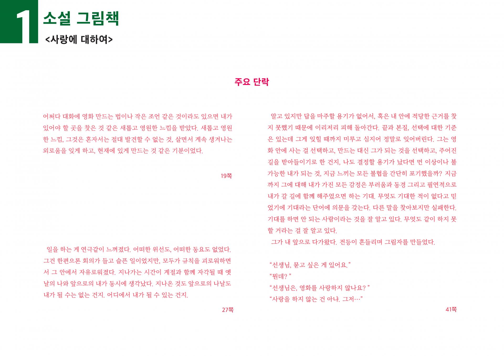 설명 | 사랑과 영화에 관한 이야기. 하고 싶은 일을 하며 살아가고자 하는 이들에게 필연적으로 따라오는 고민을 제이와 중원의 관계를 통해 말하고 있는 책이다.