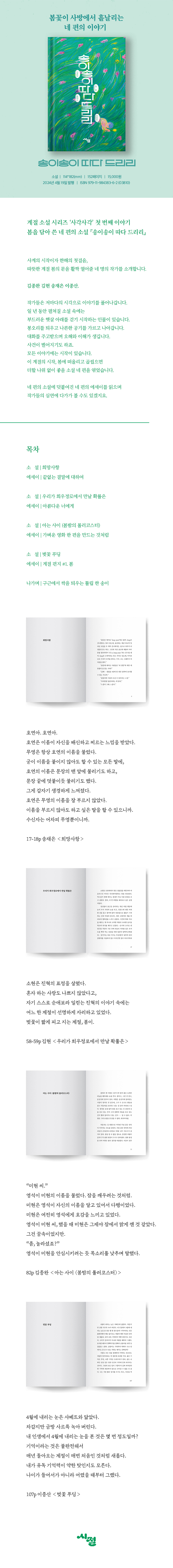목차 소 설 | 희망사항 에세이 | 끝없는 결말에 대하여 소 설 | 우리가 희우정로에서 만날 확률은 에세이 | 아름다운 너에게 소 설 | 아는 사이 (봄밤의 롤러코스터) 에세이 | 가벼운 영화 한 편을 만드는 것처럼 소 설 | 벚꽃 푸딩 에세이 | 계절 편지 #1. 봄 나가며 | 구근에서 싹을 틔우는 튤립 한 송이 | |