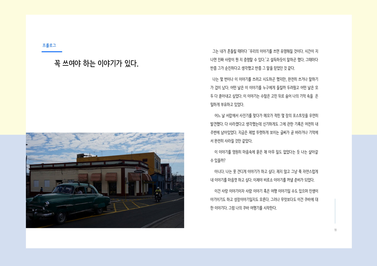 아무것도 모른 채 갔던 쿠바 여행이 저의 많은 부분을 채워버렸기에 누군가와 꼭 이 이야기를 나누고 싶었어요.