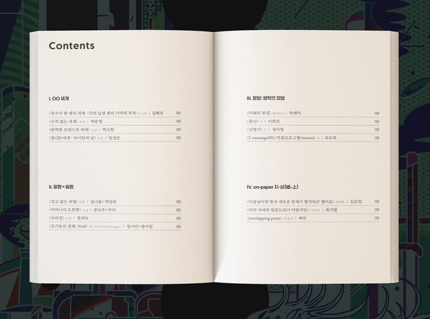 문학의 영역 확장을 목표로 하는 새로운 감각의 콜라보 실험서(Collaboration Lab)다.