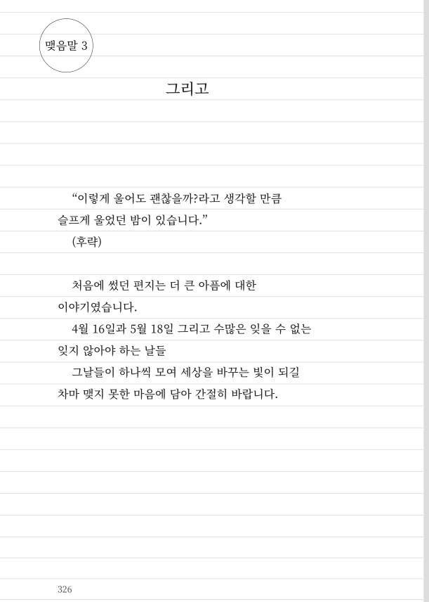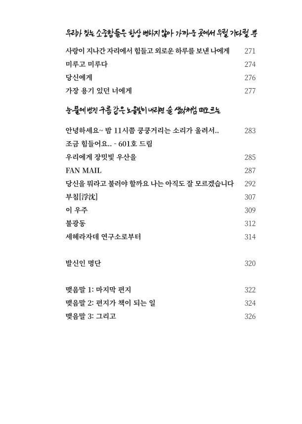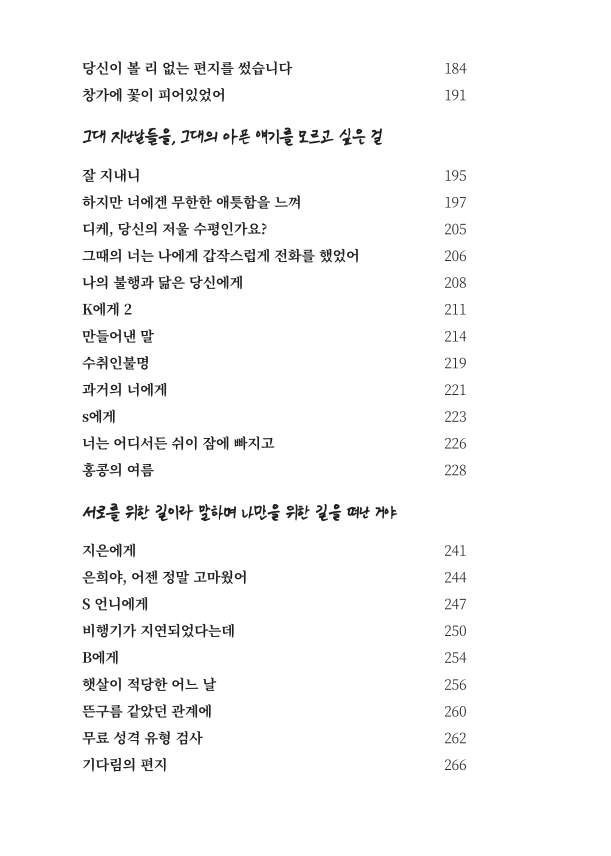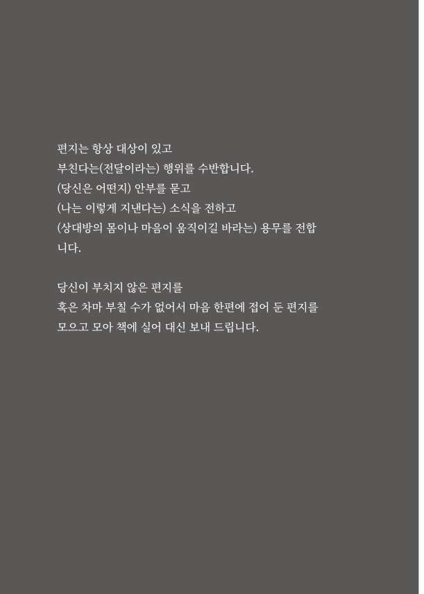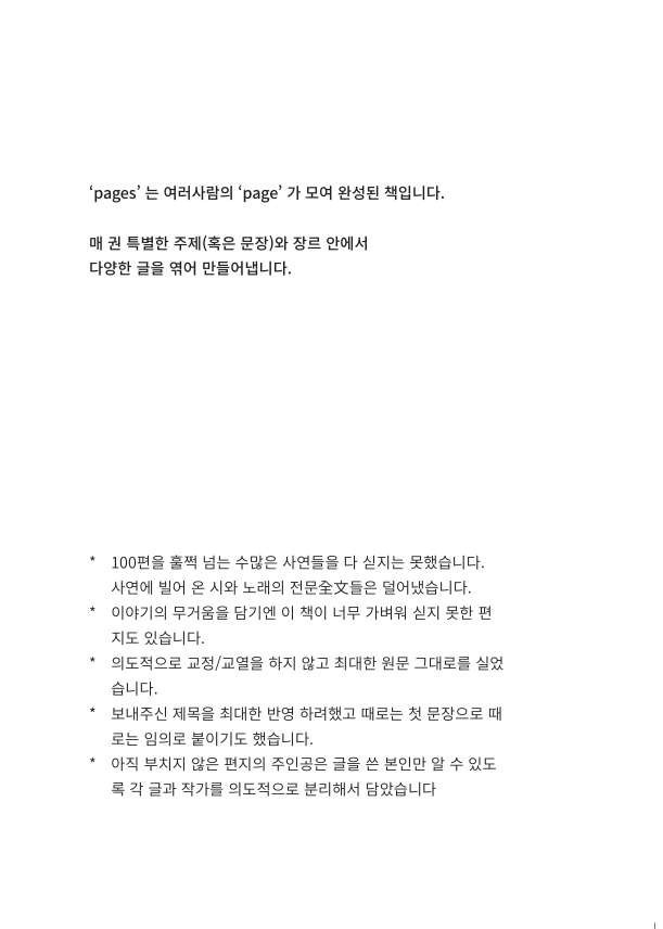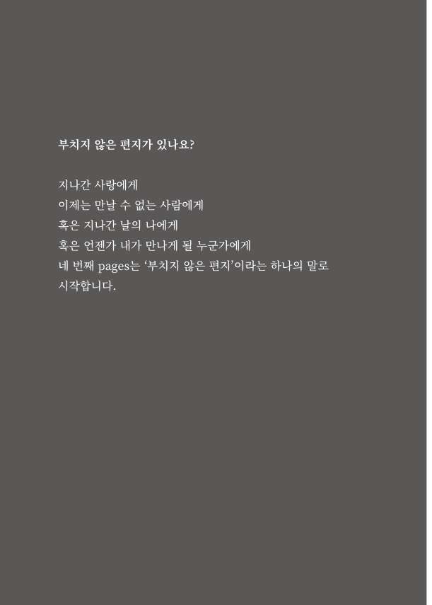 네 번째 pages는 ‘부치지 않은 편지’이라는 하나의 말로