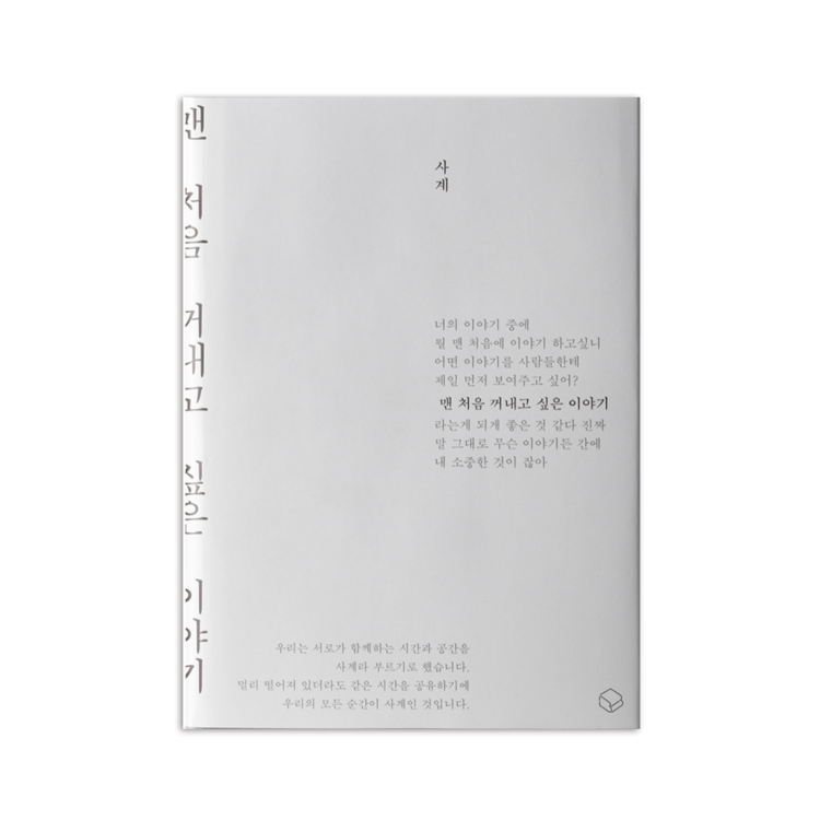 다른 누군가와 함께한다는 것이 우리에게 가장 중요한 가치로 한 권의 책을 내는 프로젝트 사계의 첫 호, 『맨 처음 꺼내고 싶은 이야기』에는 소담과 해수의 다양한 기록이 수록되어 있습니다. 초등학교 시절에 쓴 일기가 웃음과 눈물이 가득한, 하지만 돌아갈 수 없기에 더욱 소중한 추억이 되어 주는 것처럼, 빛날 수 있는 가능성을 무한히 가진 현재의 기록은 아직 다가오지 않은 미래에 소중한 보물 상자가 되어 줄 것입니다.
