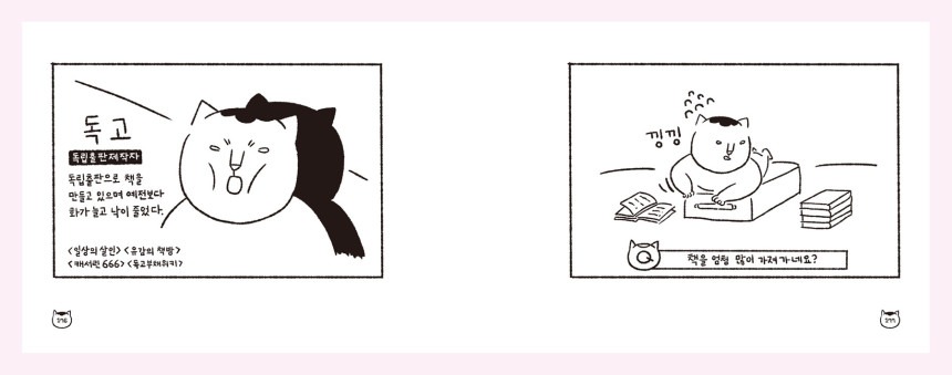 독립출판을 처음 접한 후 완전히 다른 세계를 만났다. 작은 사각형 안에 담긴 이야기들로 나의 세계가 바뀐 것처럼 나의 이야기로도 누군가의 세계가 바뀌는 꿈을 감히 꾸어본다. 독립출판으로 <일상의 살인> <유감의 책방> <캐서린 666> <독고부채위키>를 제작했다.