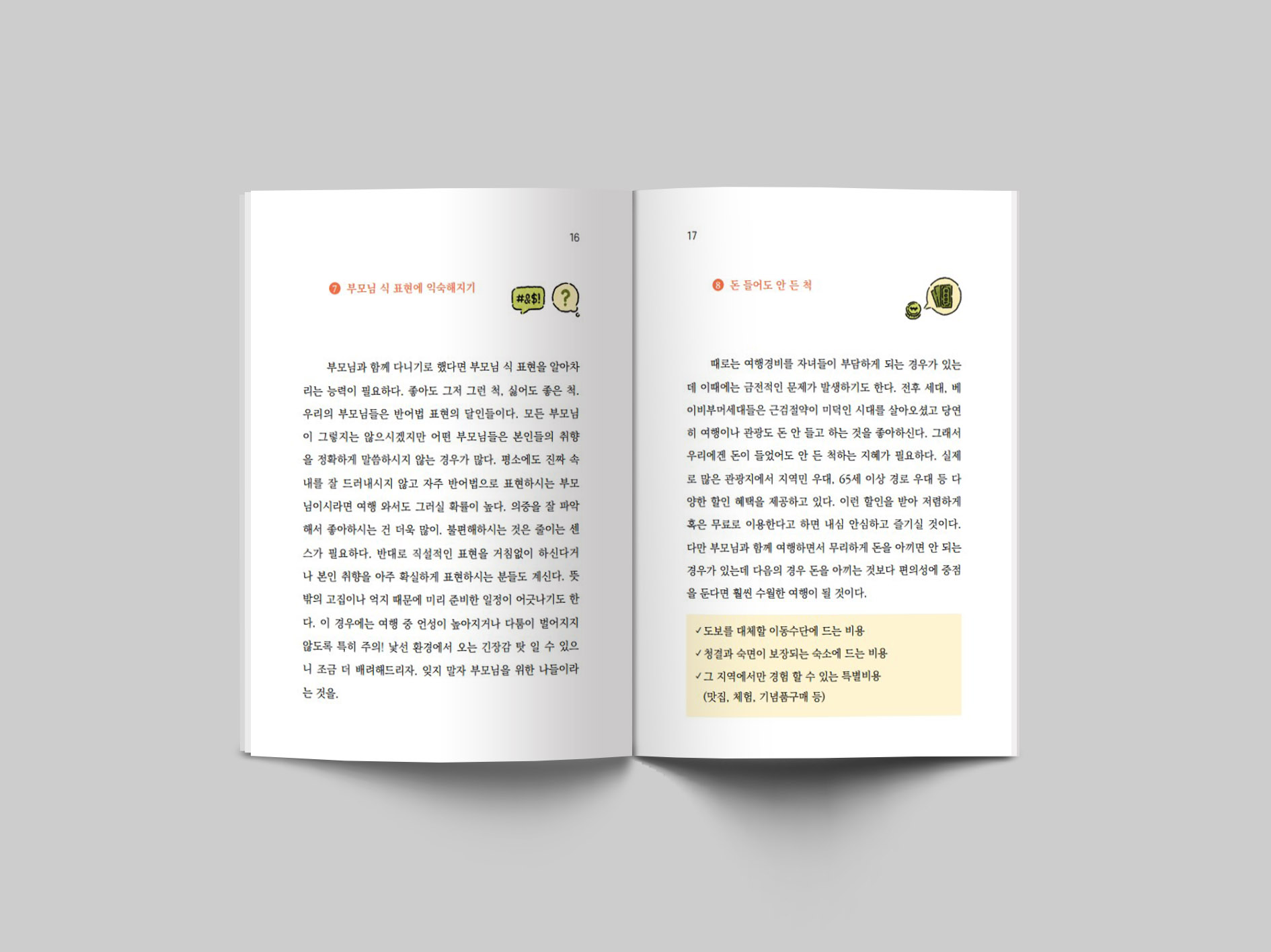 어린 자녀들을 데리고 가기 위한 여행책자는 많지만 성인이 된 자녀들이 나이든 부모님을 모시고 하는 여행 책자는 찾기 어려워요.