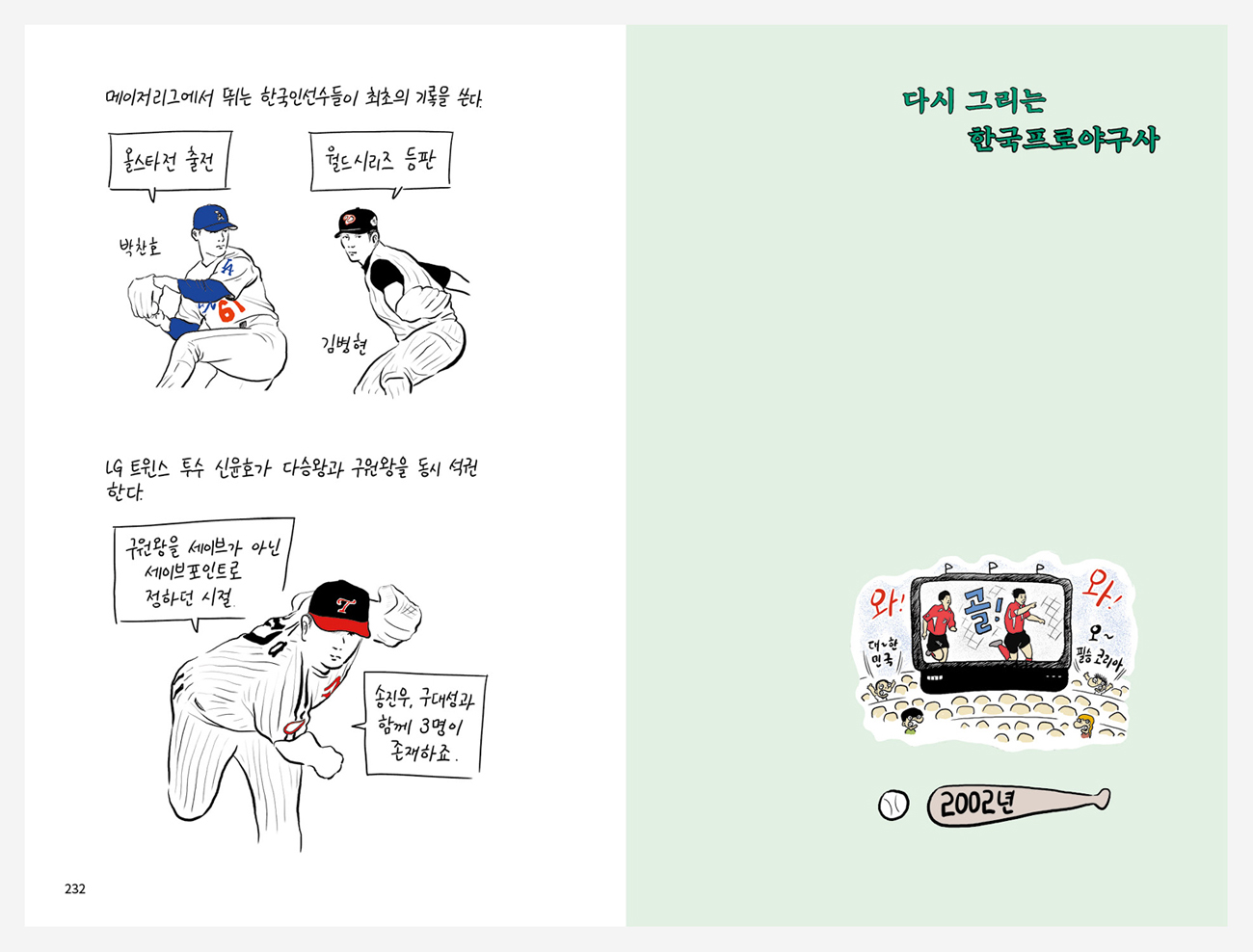 <다시 그리는 한국프로야구사>는 한국프로야구 40여 년의 역사를 한 권에 담았다. 1982년 프로스포츠로 출범하여 2020년까지, 한국프로야구사의 굵직하고도 의미 있는 에피소드를 한 눈에 보는 건 놀라운 경험이다.