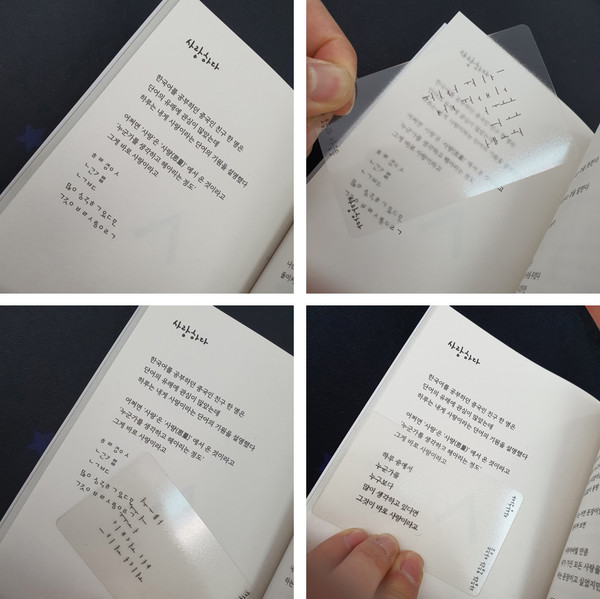 셋째로, 책갈피 볼펜이 포함되어있습니다. 책갈피 형태로 얇게 제작된 이 볼펜은 책에 포함되어있기 때문에 책을 읽다가 바로 엽서를 쓰고 싶을 때 사용할 수 있습니다.